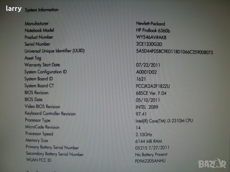 Продавам лаптоп HP ProBook 6360b на части. Останаха само: