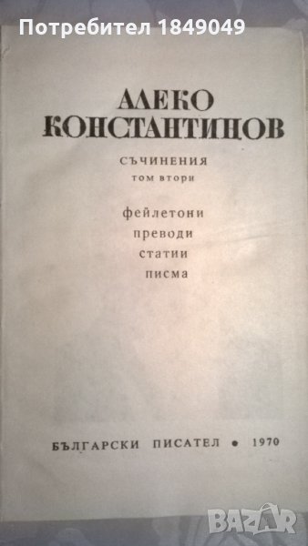 Алеко Константинов "Съчинения.Том втори:Фейлетони.Преводи.Статии.Писма" - 0.50 лв/1970г.,твърди корици/.