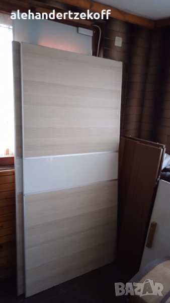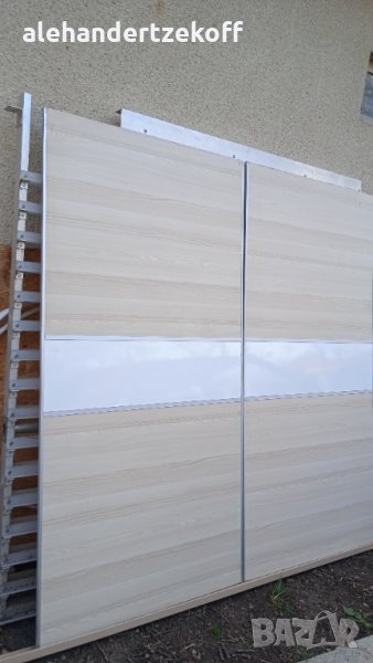 Вратите са два броя /комплект/ с размери - 182,3/90,4 /2 см. Изградени са в комбинация от ламинирани плоскости, плексиглас и алуминий. Тази съвременна технология се използва, както заради изключителния визуален ефект, така и за да се предотврати усукването и огъването на вратите вследствие на вътрешни напрежения породени от топлинните разлики. Вратите са в състояние видно от снимките с леки козметични забележки отрзени в снимките. Цената е за комплекта и може да се коментира. Продават се и поотделно.