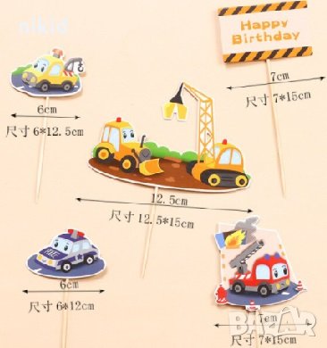 Превозни Багер Кран Полиция пожарна Happy Birthday сет топери клечки торта украса парти Рожден Ден, снимка 1 - Други - 32879713 Превозни Багер Кран Полиция пожарна Happy Birthday сет топери клечки торта украса парти Рожден Ден, снимка 2 - Други - 32879713 1/2