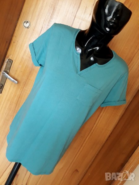 Нова тюркоазена тениска с джобче Л → Обява 32879959