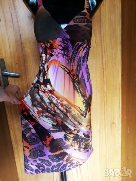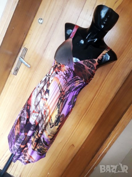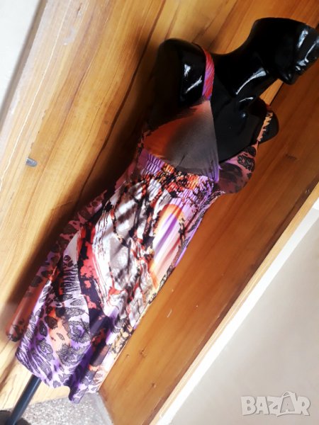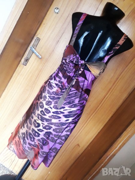 Лилава лятна рокля до коляното леопардов принт С-М → Обява 32883328