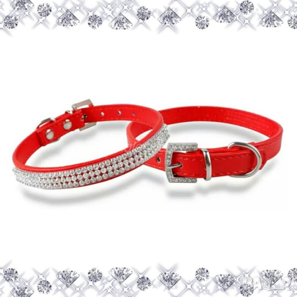 Нашийници с камъчета за малки кучета. Нашийник за малко куче. Червен нашийник. Черен нашийник.