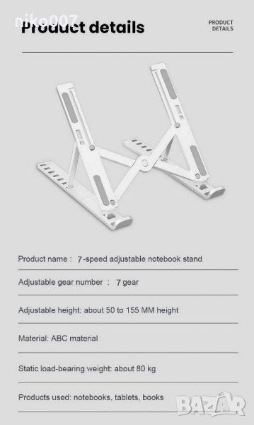 подложки, а горната е снабдена с 3 лентовидни неплъзгащи се силиконови подложки. Куката е снабдена с 2 неплъзгащи се силиконови подложки, които могат да фиксират лаптопа на място, да предотвратят плъзгането на устройството и да защитят устройството в най-голяма степен.