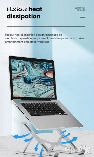 2. Разсейване на топлината: Предният ъгъл и кухият дизайн подобряват циркулацията на въздуха, ускоряват скоростта на разсейване на топлината, така че този държач е идеален за лаптоп.