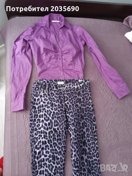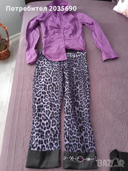 Сет панталон леопардов принт в лилаво с камъни и ризка. Размер С и двата артикула.
