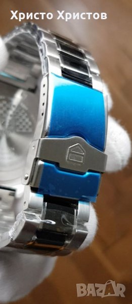 TAG Heuer Calibre 16, F1, кварц, хронограф, L316 стоманен корпус и биколорна верижка с оригинално закопчаване, ефектен черен циферблат с дата в позиция 3 часа, фосфоресциращи стрелки и сребристи маркери.Луксозна кутия.