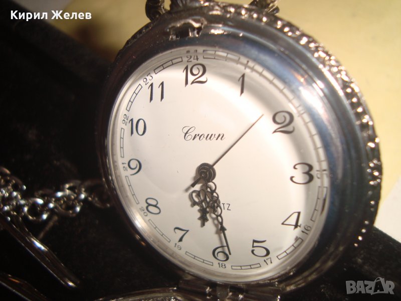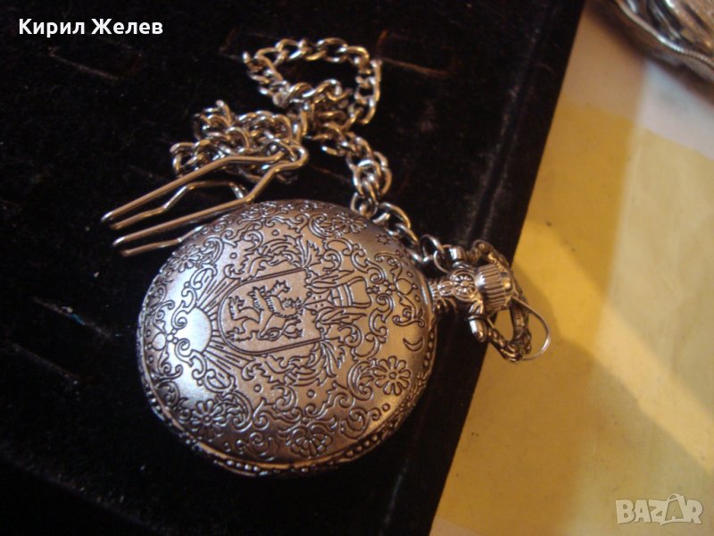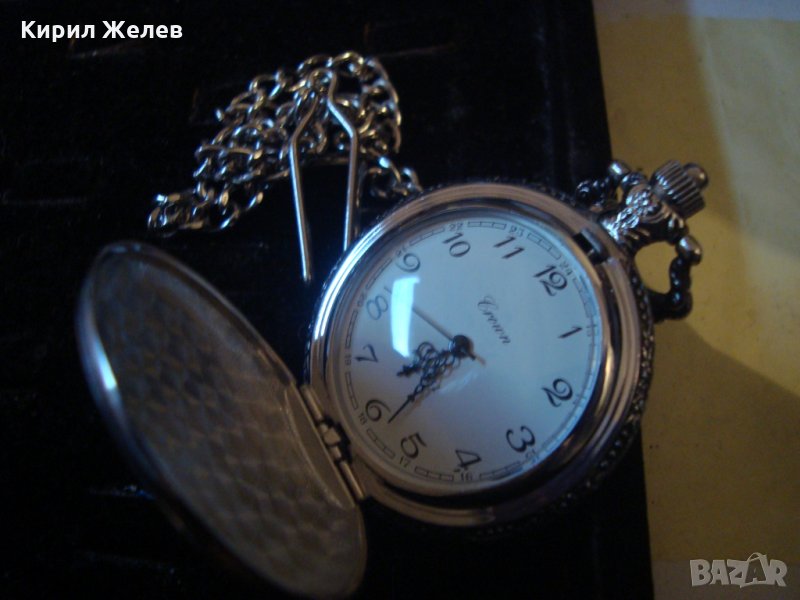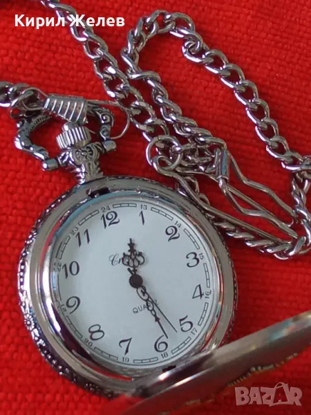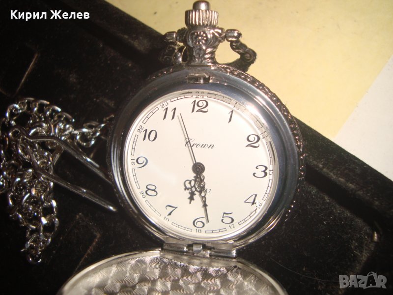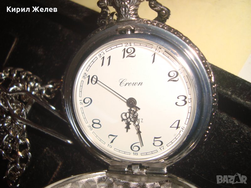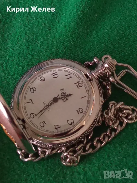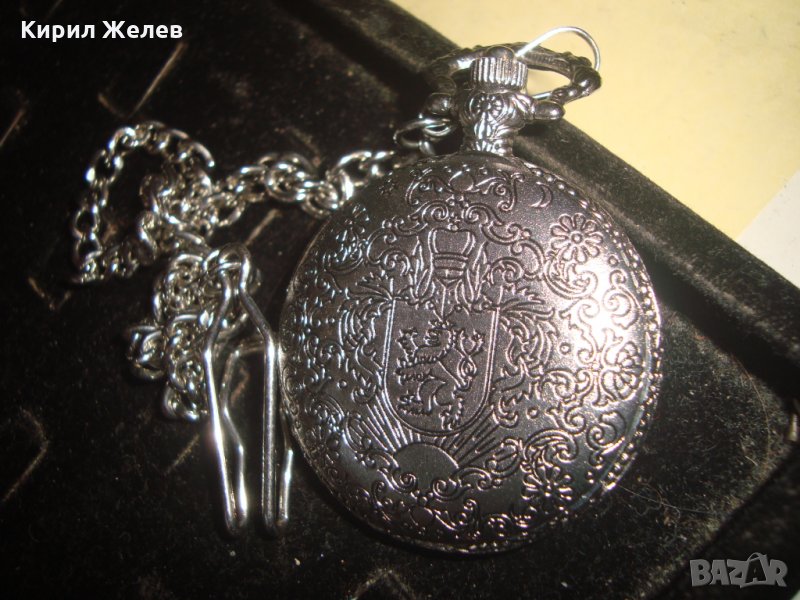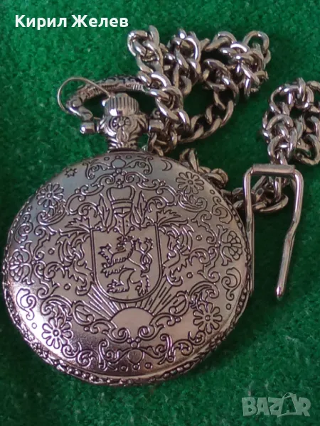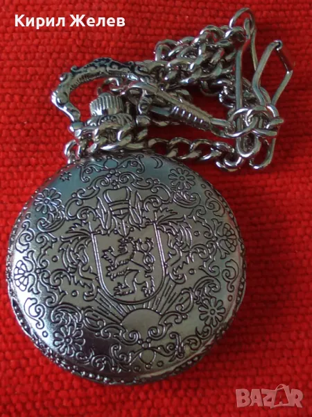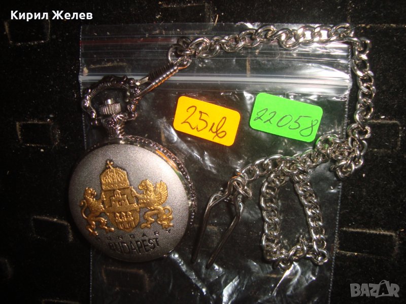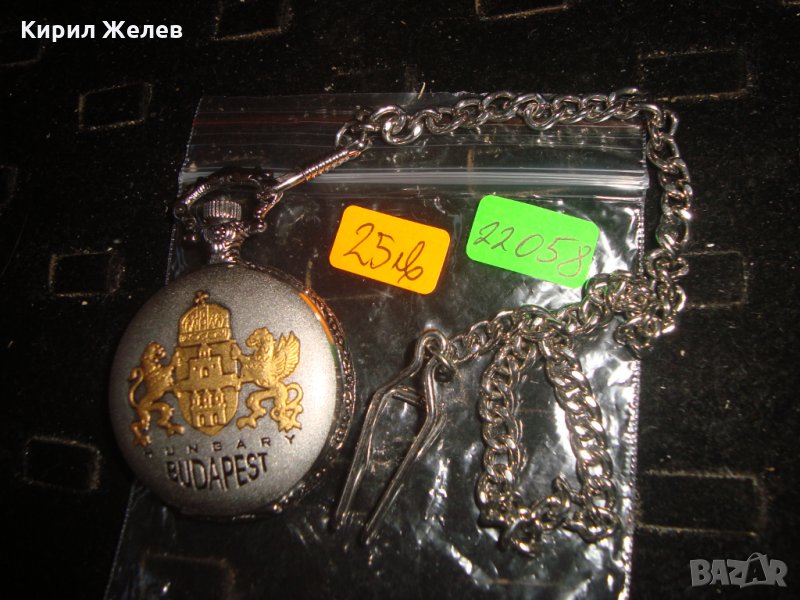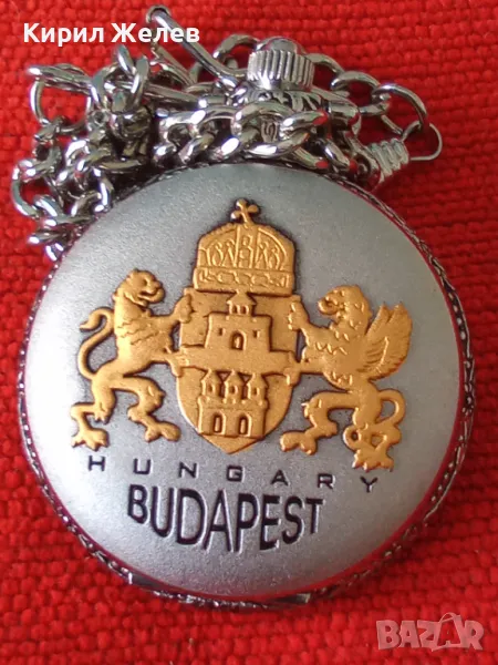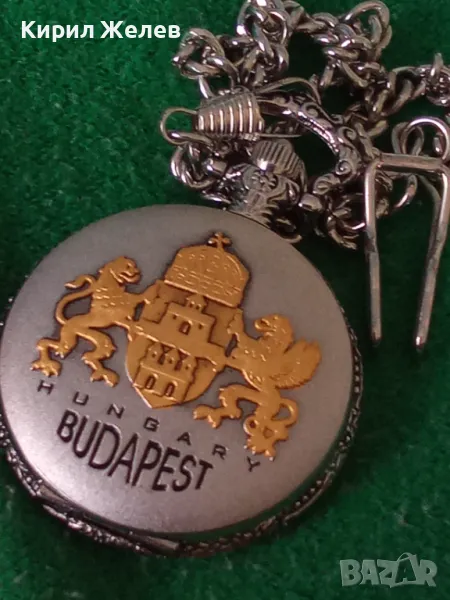 ВИНТИДЖ КВАРЦОВ ДЖОБЕН ЧАСОВНИК БУДАПЕЩА РАБОТЕЩ с ГЕРБ и ОРНАМЕНТИРАН КАПАК и ВЕРИЖКА КЮСТЕК 22058