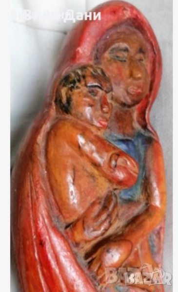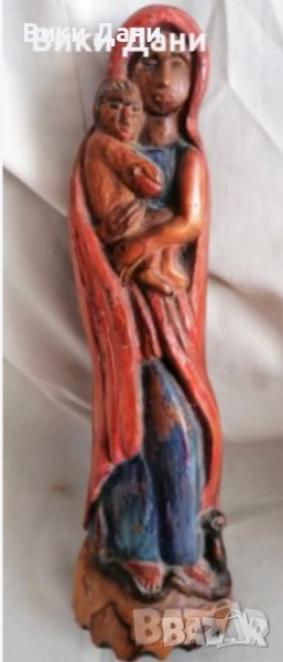 масивно дърво статуетка резба Мадона с младенец 1982 45 💶