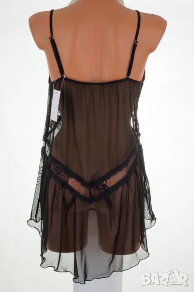 Черна еротична тюлена нощница с прашки марка Dkaren - 2XL/3XL