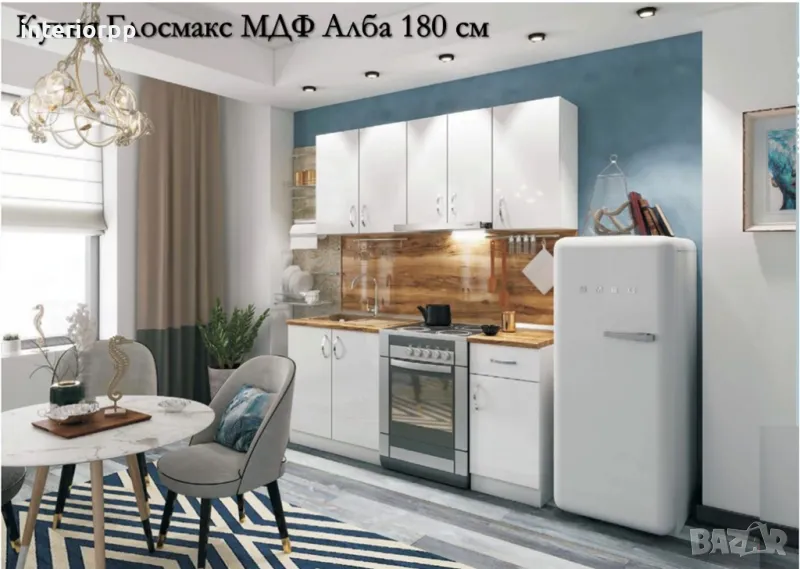 Кухня Глосмакс Алба МДФ - 180см от модулни шкафове. Безплатен Проект