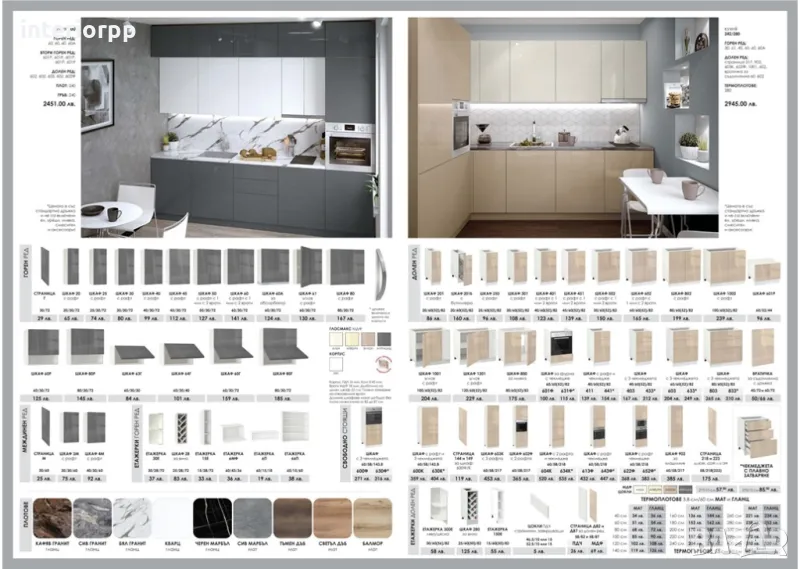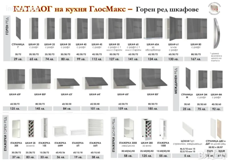 Кухните от Модулните шкафове серия ГЛОСМАКС ГЛАНЦ МДФ СА по КАТАЛОГ с размери: