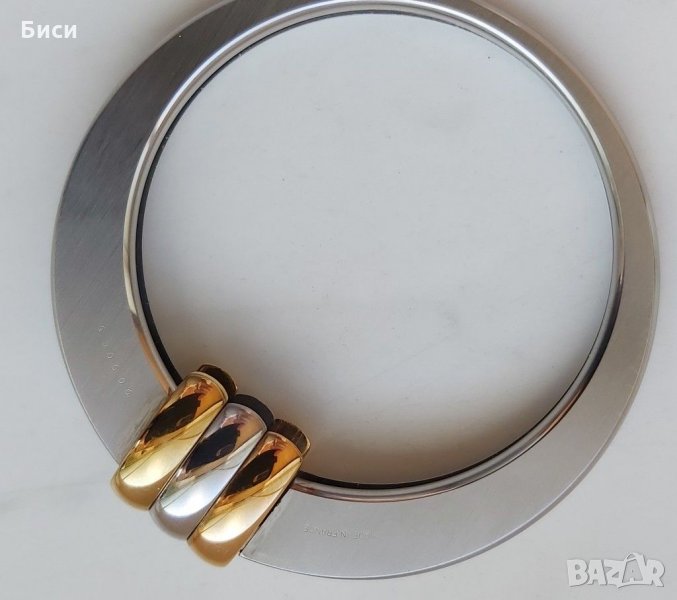 Доколкото виждам в интернет по референтния код за автентичност е направен от 3 вида злато 18 к-бяло,розово и жълто.Тежи около 8-9 гр.