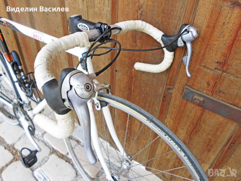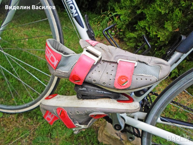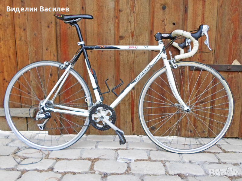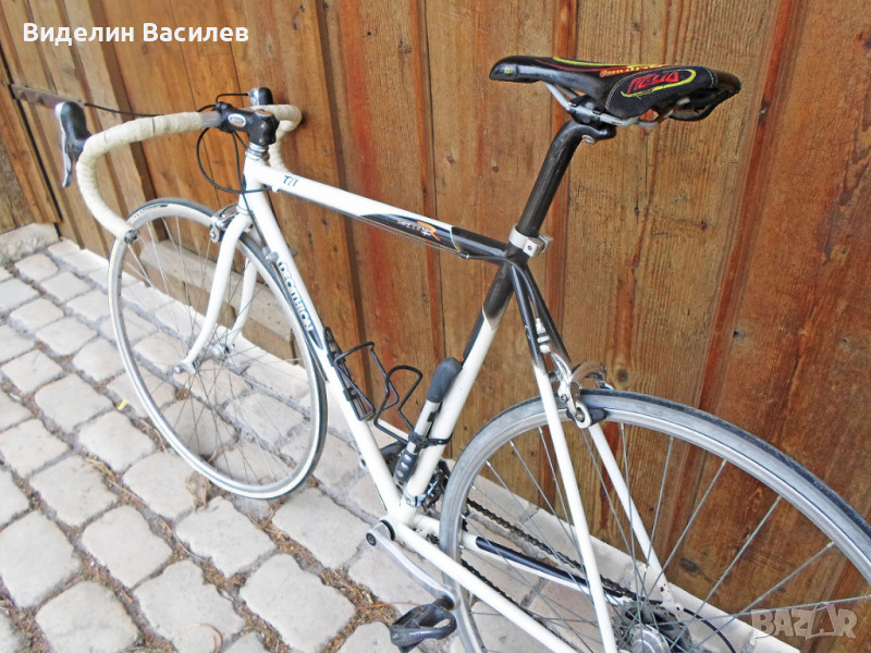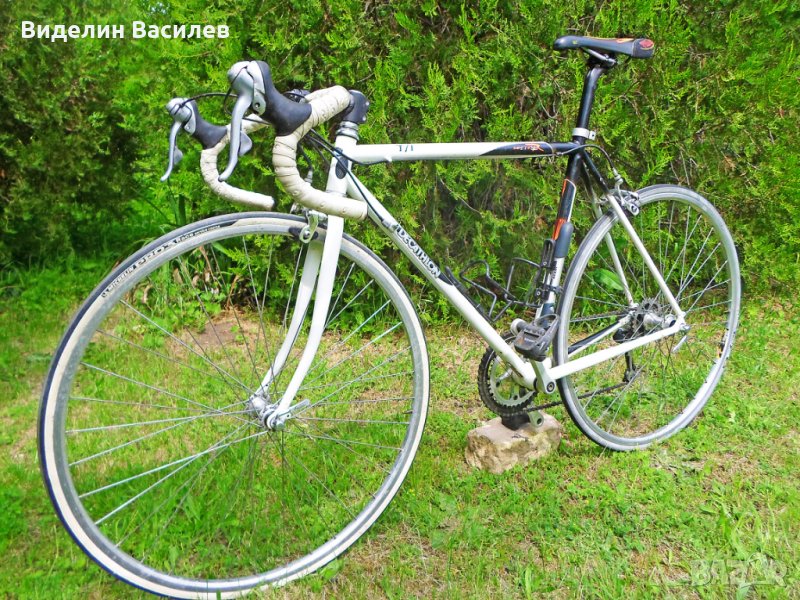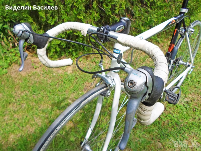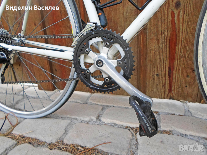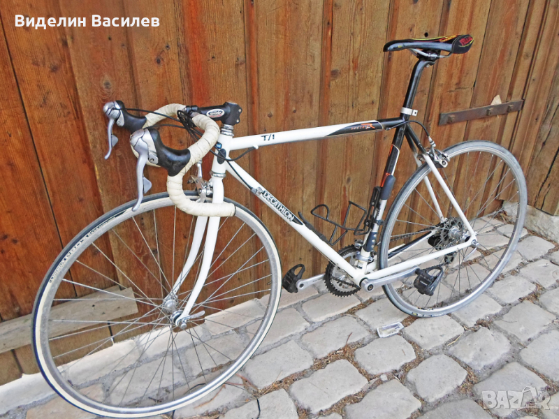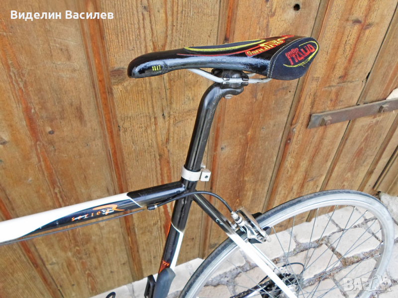 Decathlon R Serie T1 със стоманена рамка/54* 54 /стоманена вилка, 2/8 скорости дуал контрол, курбели компакт 50* 34, касета 11* 28,Selle Italia Nitrox Gel Sadle. Нормални следи от употреба. Подарък шпайкове Sidi /42 номер/с парчета за автоматите Look Delta.