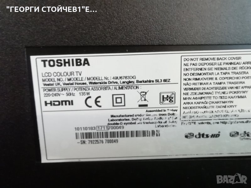 TOSHIBA 49U6763DG СЪС ДЕФЕКТЕН ДИСПЛЕЙ