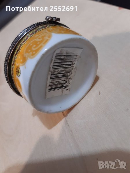 Порцеланова кутия, красиво инкрустирана. Размери-3/4см.