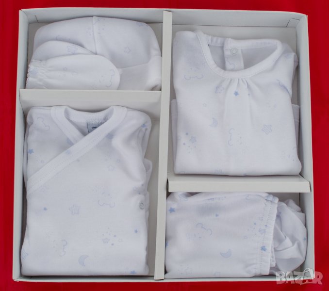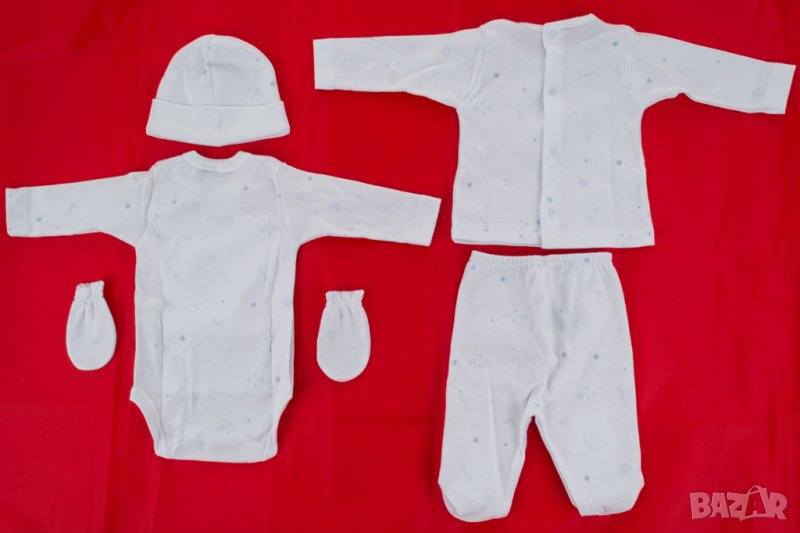 Бебешки памучен комплект за новородено 5 части в бяло и синьо марка Babidu