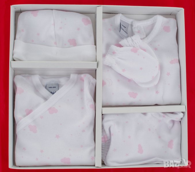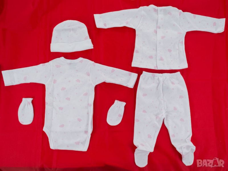 Бебешки памучен комплект от 5 части в бяло и розово марка babidu