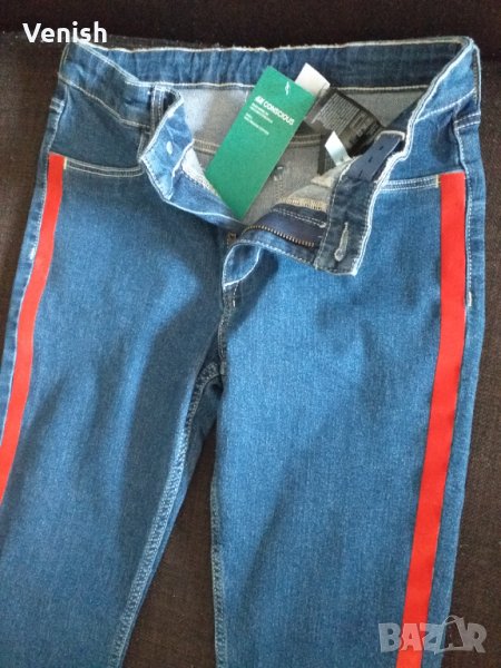 Нови дънки на H &M класически модел, с червен кант отстрани. Само пробвани, с махнат етикет.