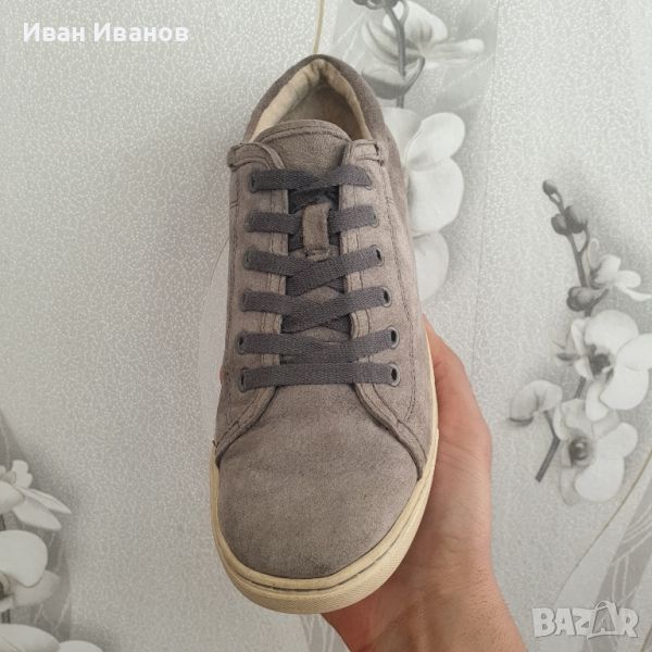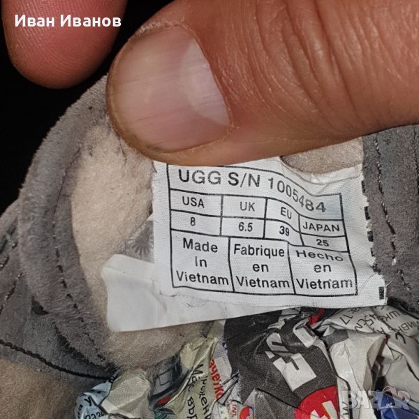 Кецове на известната марка UGG 1005484 Gray Tomi SuedeИзползвани , но запазени без забележки Естествен велур и отвътре с мека овча козина Дължина на стелката 24,5 см Цена по магазините около 200 лева Марка с доказани качества и комфорт За повече информация питайте