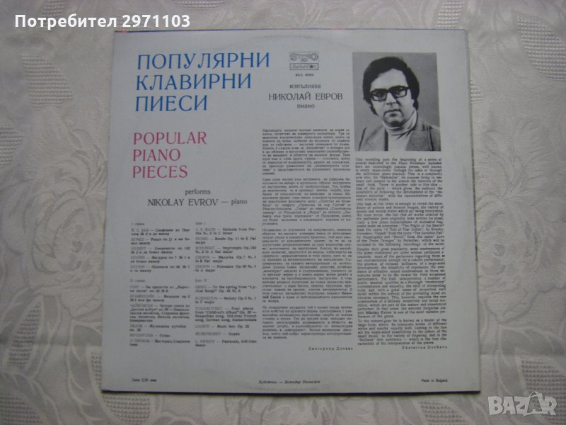Грамофонна плоча - ВКА 10284 - Николай Евров, пиано. Популярни клавирни пиеси