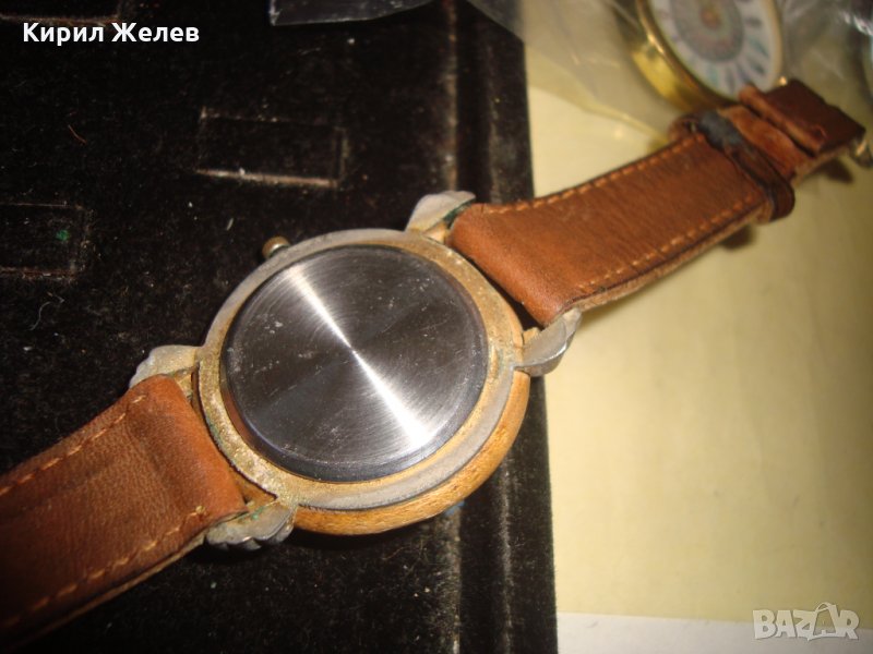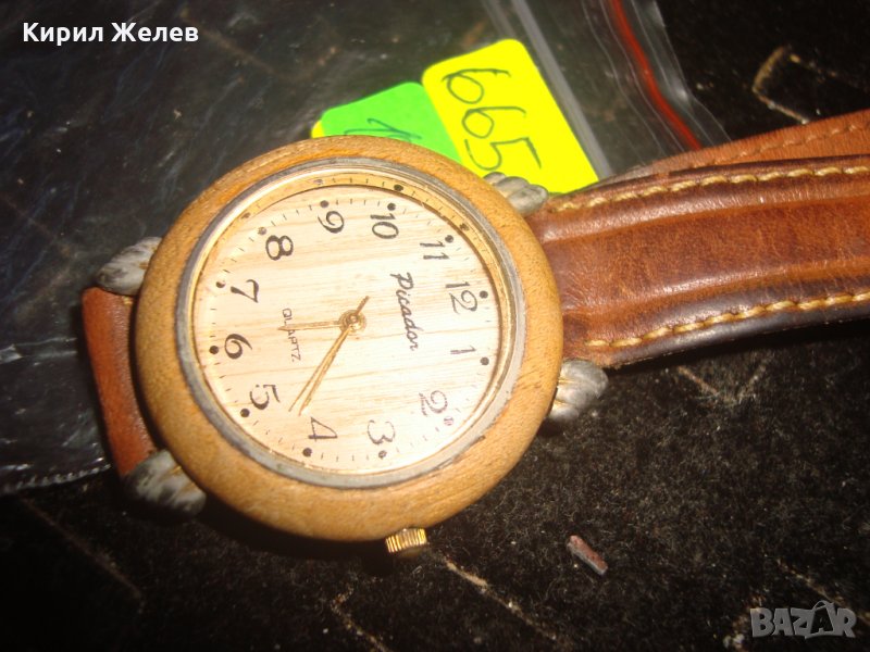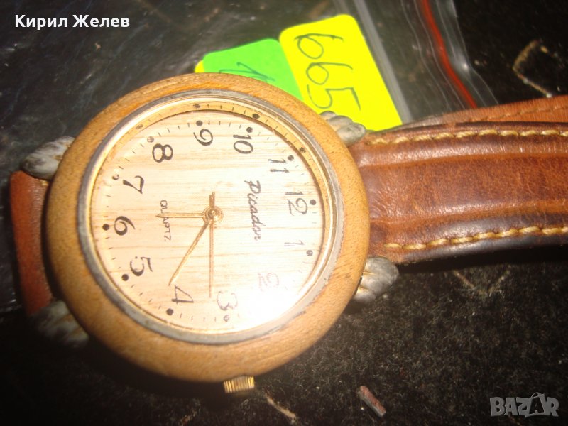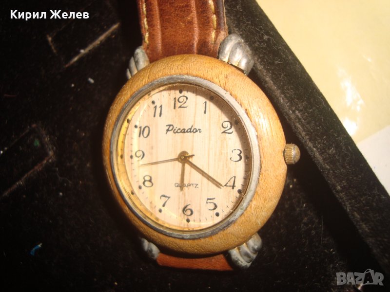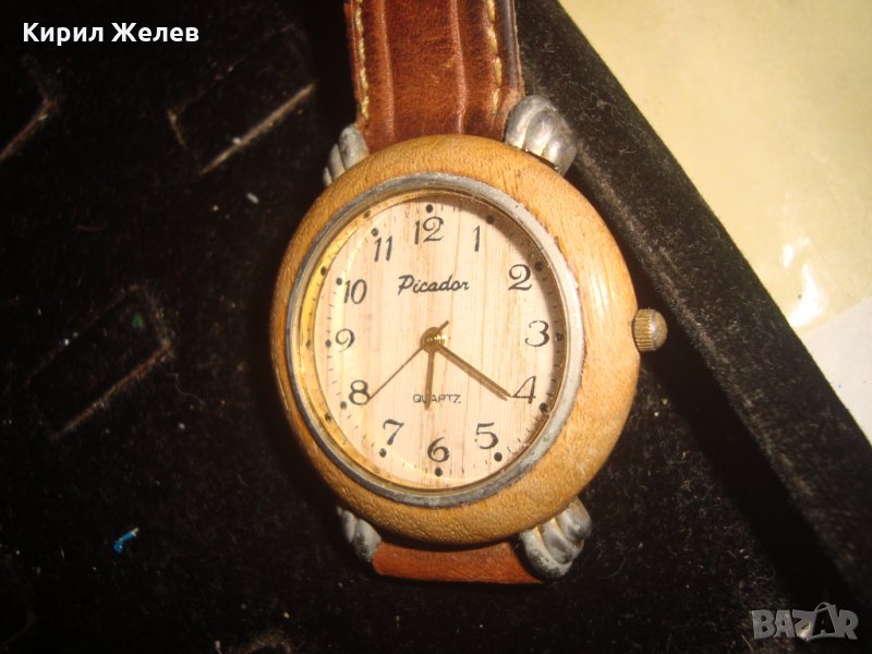 PICADOR МАРКОВ ВИНТИДЖ ДИЗАЙН КВАРЦ ЧАСОВНИК от ДЪРВО с КАИШКА ЕСТЕСТВЕНА КОЖА РАБОТЕЩ 66511
