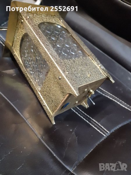 Музикална, работеща кутия-бутилка във формата на фенер. Материал- метал и стъкло. Размери- 20/11/11см.