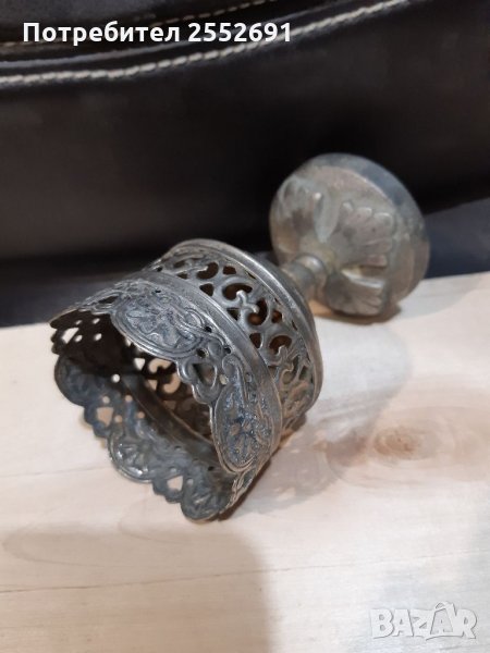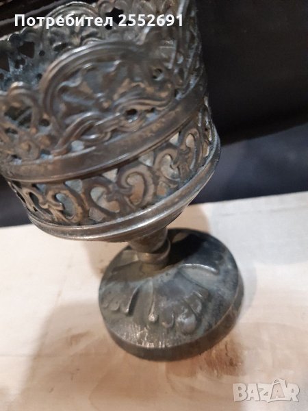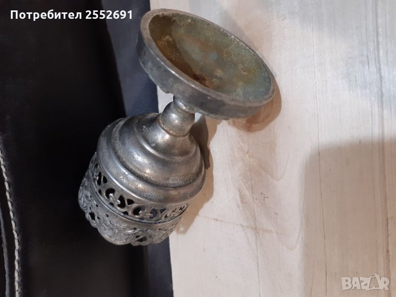 Старинен, религиозен , ажурен, метален съд с масивна основа. Височина-10см. Диаметър-6см.