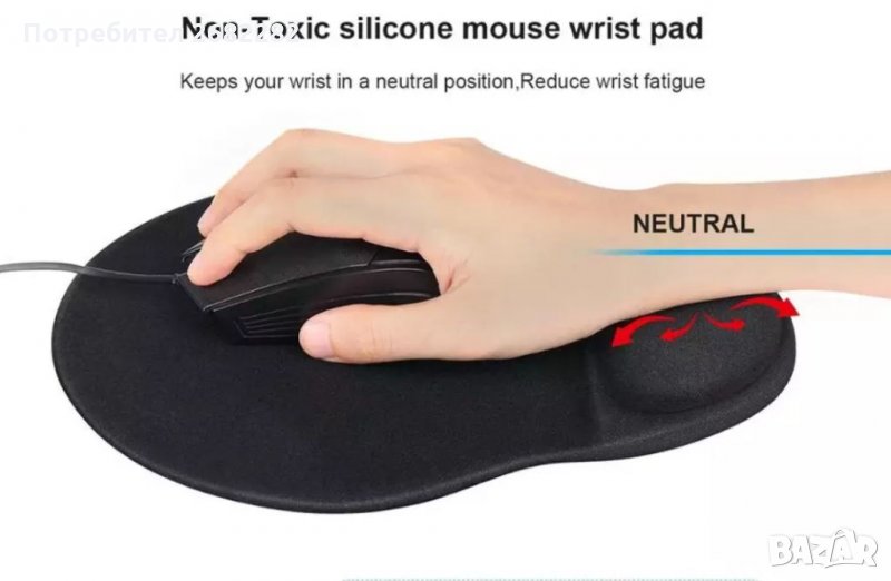 Анатомичен, предотвратява преумора на китката при работа с компютър.