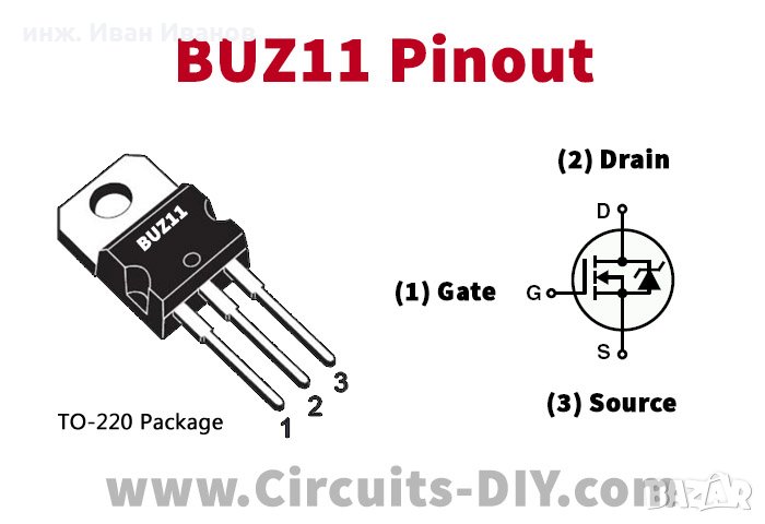 BUZ11 MOSFET-N транзистор 50V, 30A, 75W, 30 mΩ typ.Производител: STMicroelectronicsЦени за количества от:1-9 броя -1.50 лв на брой10+ броя - 1.20 лв на бройНаличност: около 100 броя на склад в СофияСнимките са взети от интернет. Ако искате оригинални снимки, моля пишете за да направя при първа възможност.За София може лично предаване, а за страната изпращам по Еконт от офис до офис за минимизиране на транспортните разходи.