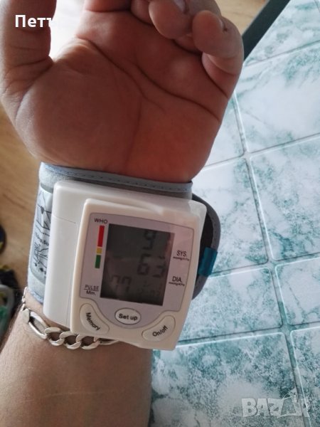 4. Чисто нов апарат за измерване на кръвно налягане и пулс за китка. Много лек и компактен. Има индикатор за батерията, звук, часовник, памет на измерванията.