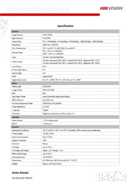 Кадри в секунда: TVI: 5 MP@20fps, 4 MP@25fps, 4 MP@30fps, 1080P@25fps, 1080P@30fps