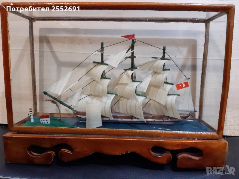 Ръчно изработен макет на кораб-платноход. Размери- 16/12/4см.
