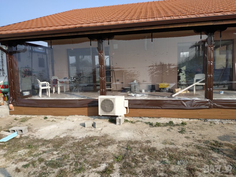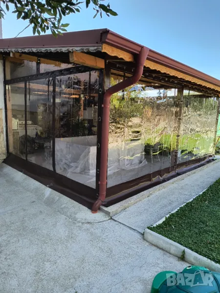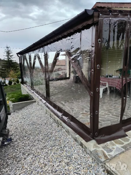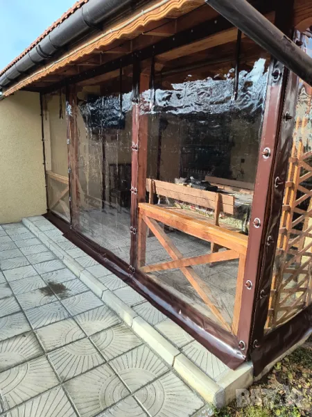 Ветроупорни завеси за навеси, барбекюта различни дървени или метални конструкции.Завесите предпазват заградените пространства от вятър, дъжд и прах.