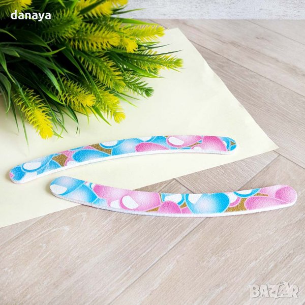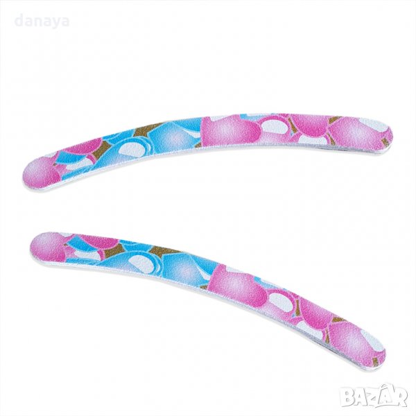 Двустранна цветна пила за нокти с принт на сърца. Извит дизайн, с бананова форма, идеална за перфектното и лесно оформяне на ноктите. Чудесна за оформяне на естествени и дори изкуствени нокти. Пилата е хартиена.