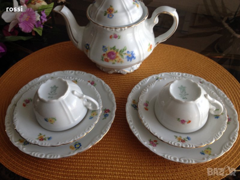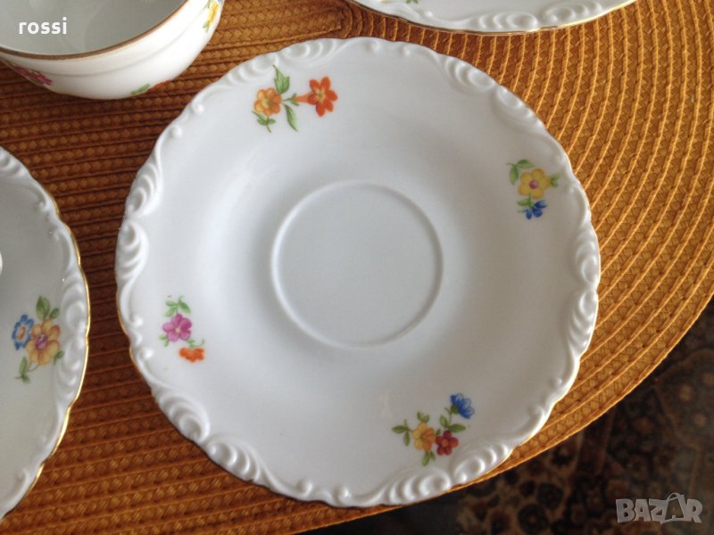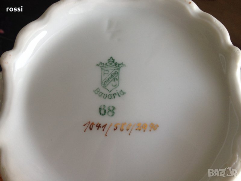 - бял, фин, лек, искрящ порцелан на известната марка Shirnding Bavaria, декориран с красиви пролетни цветя, позлата и релефни орнаменти по края,