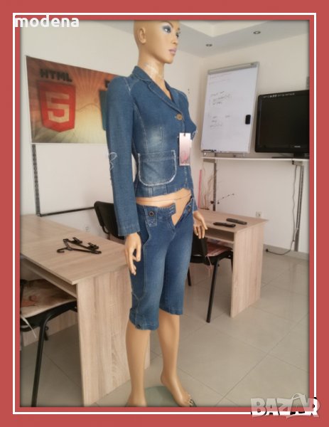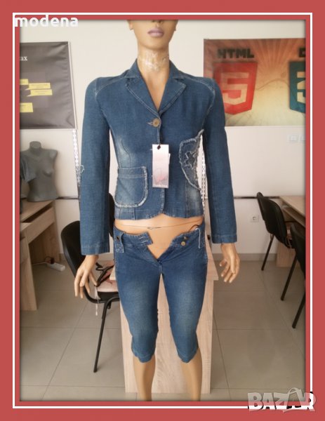Костюм дънков на русенската фирма "Роси" №40(30620), състав - 100% памук, намален от 89 лв. Има и панталон №42.