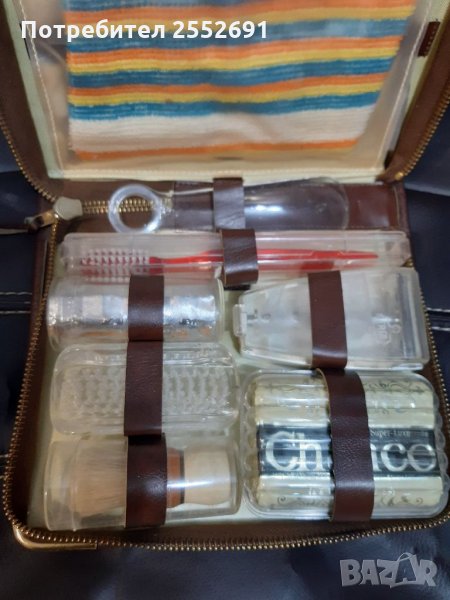 Винтидж туристически комплект в кожен калъф. Размери-22/16/5см.
