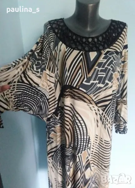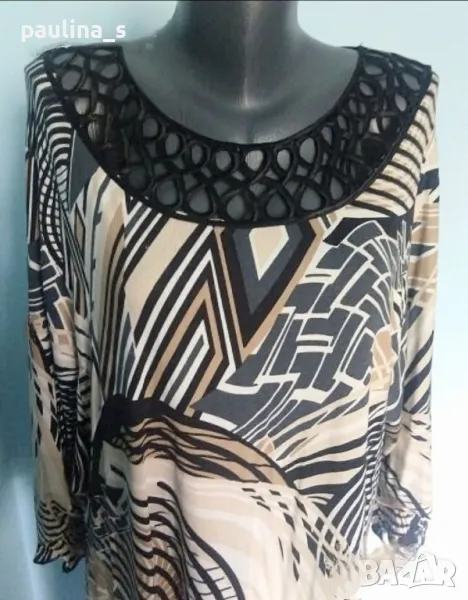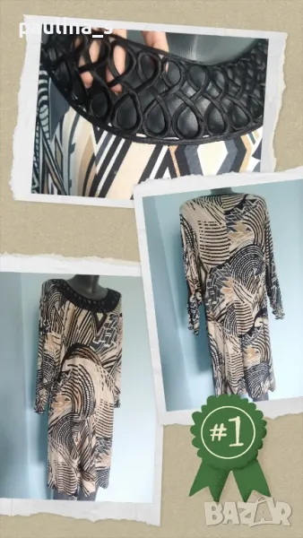 2. Колаж / XL / 4XL / "miXXim". Една бройка. Цената е крайна 29,99лв. Уникална рокля тип туника, може да се носи и с клин долу. Има декорации от черен сатен на бието. Моделът е с полуприлеп ръкави, гръдната обиколка влиза в ръкава и това дава възможност да се носи от няколко размера, същевременно и да стои великолепно, клоширан. Материята е еластична и приятна за допир на голо - памук и вискоза. Превъзходна е - за ценителки на уникалните дрехи. Нова е, без дефекти и етикет.