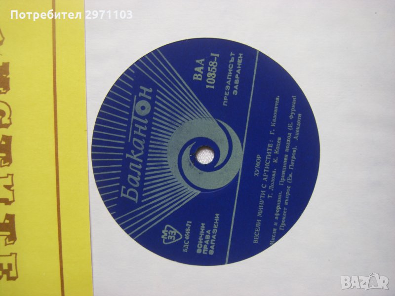 Грамофонна плоча - ВАА 10358 - Хумор. Народен хумор. Весели минути с артисти Георги Калоянчев, Татяна Лолова, Константин Коцев, Стоянка Мутафова, Никола Анастасов и Григор Вачков