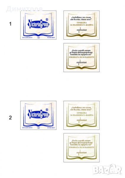 КЪСМЕТЧЕТА за Кафе, Коледни за Баба Марта и др. С ФИРМЕНИЯ ВИ ЗНАК И 2 ЕЗИКА ЕДНОВРЕМЕННО+GSM+Сайт+FB и др. 4.50 за 1пак. (състоящ се от 168бр. късметчета Може да са и по 112бр. в пакет но крайната бройка остава същата за България и 4.90лв за чужбина. КЪСМЕТЧЕТАТА СЕ ИЗРАБОТВАТ НА ВСИЧКИ ЕЗИЦИ! От печат излизат 170пак.