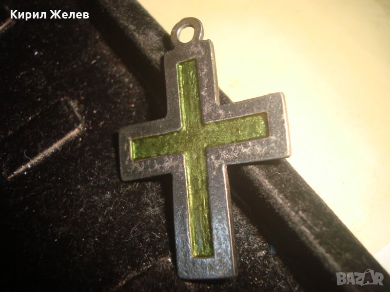 ДВУСТРАННО ЕМАЙЛИРАН АРТ ПОСРЕБРЕН МЕТАЛЕН КРЪСТ МЕДАЛЬОН 22238