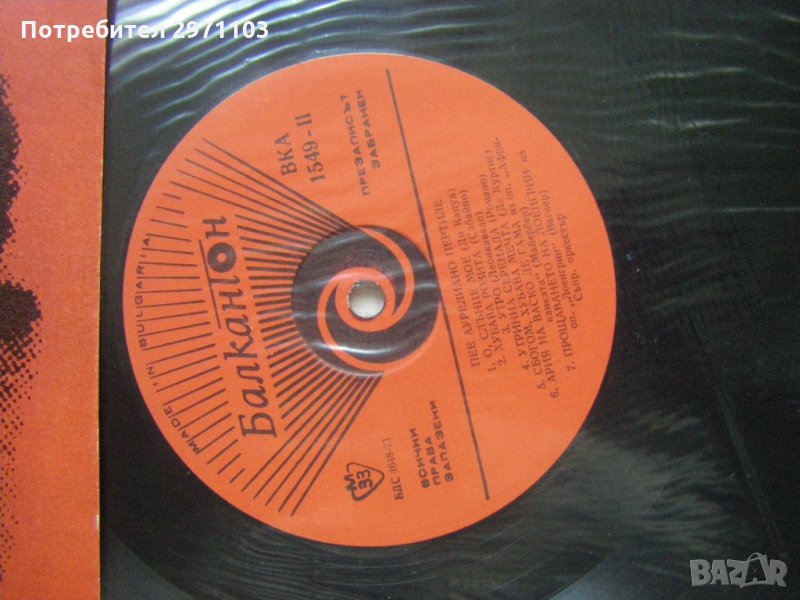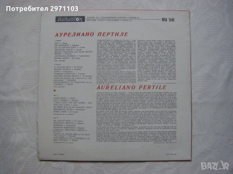 Грамофонна плоча - ВКА 1549 - Рецитал на Аурелиано Пертиле - тенор