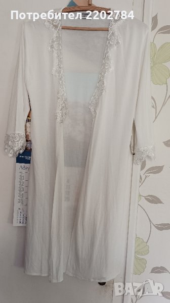 Втория е тънък памук трико,с дантела на ръкавите и отпред.Модела е без колан,без закопчаване,да пада свободно.