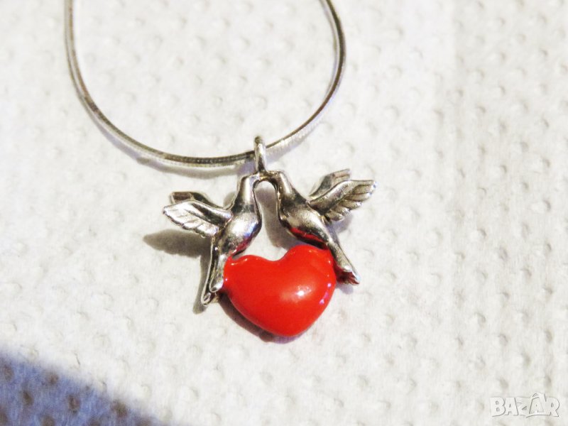 Сребърна Целувка на две гълъбчета и едно голямо любящо сърце - подарете любов