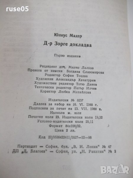 Книга "Доктор Зорге докладва - Юлиус Мадер" - 368 стр. → Обява 32967305