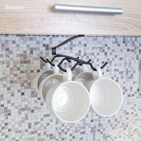 Метална закачалка за чаши и кухненски прибори пригодена за закачане за кухненски шкаф. Висящ органайзер за чаши за кафе, чай или други чаши с дръжка.