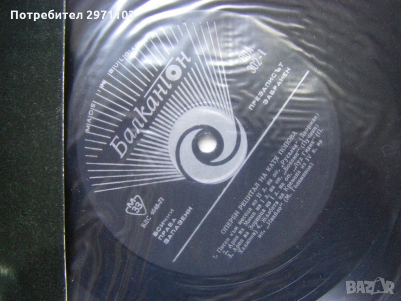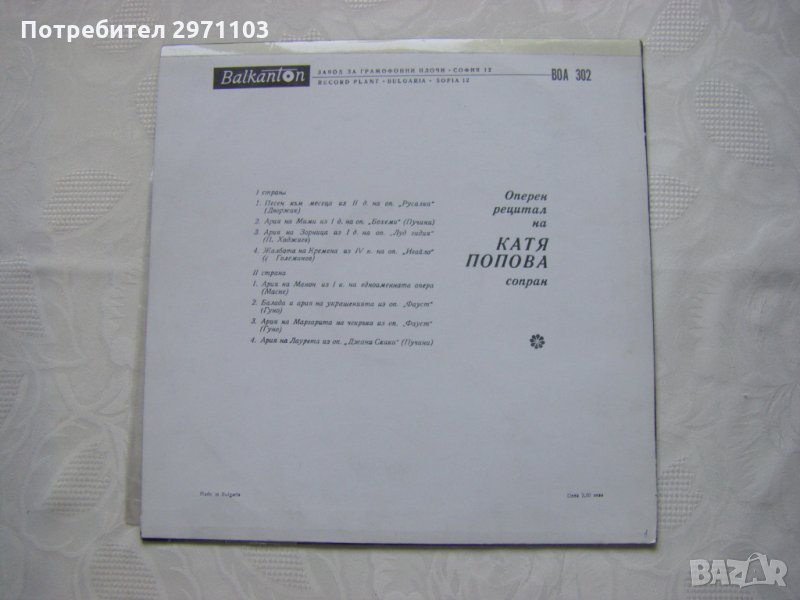 Грамофонна плоча - ВОА 302 - Оперен рецитал на Катя Попова - сопран