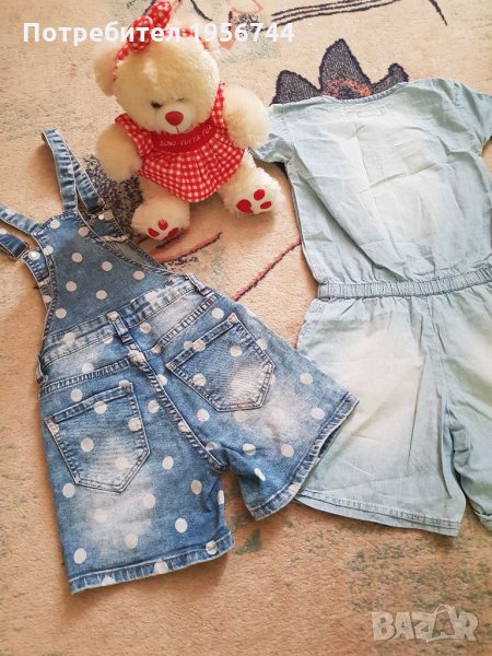 Лот от два броя дънчени гащеризони размер 122-128см, единият е от лек, памучен дънчен плат, чудесни за предстоящия сезон, стоят чудесно.