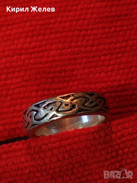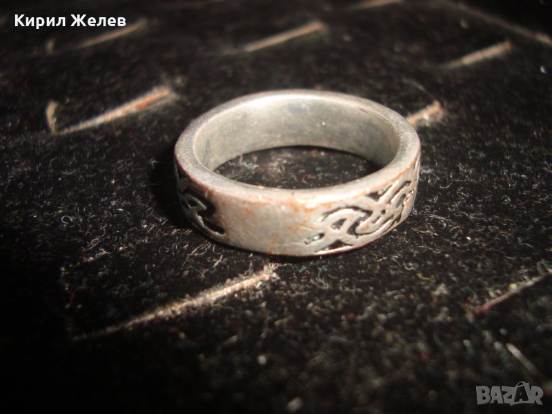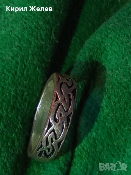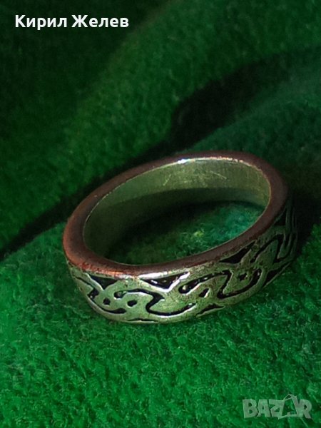 ВИНТИДЖ КРАСИВО ОРНАМЕНТИРАН СТАР МЕДЕН ПОСРЕБРЕН ПРЪСТЕН ТИП ХАЛКА 22249